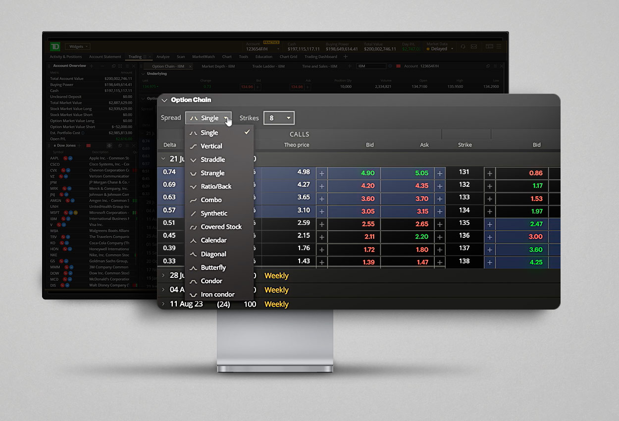 With TD Active Trader you can implement multi-legged options strategies to help you better balance risk and potential returns.