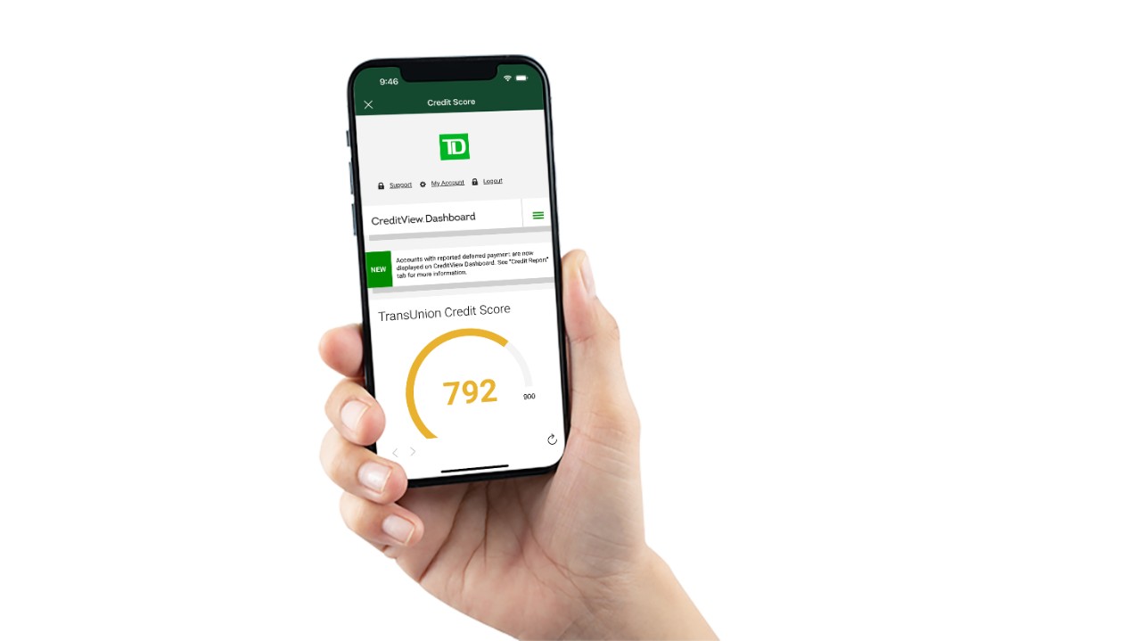 Check your credit score for free1 with the TransUnion CreditView® Dashboard in the TD app.