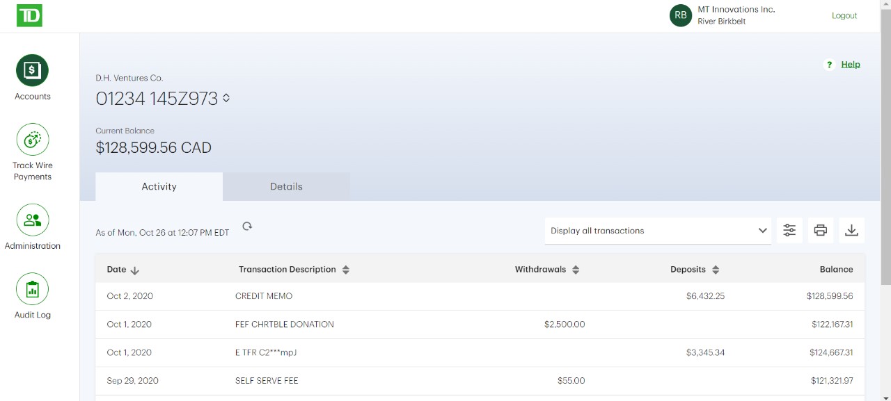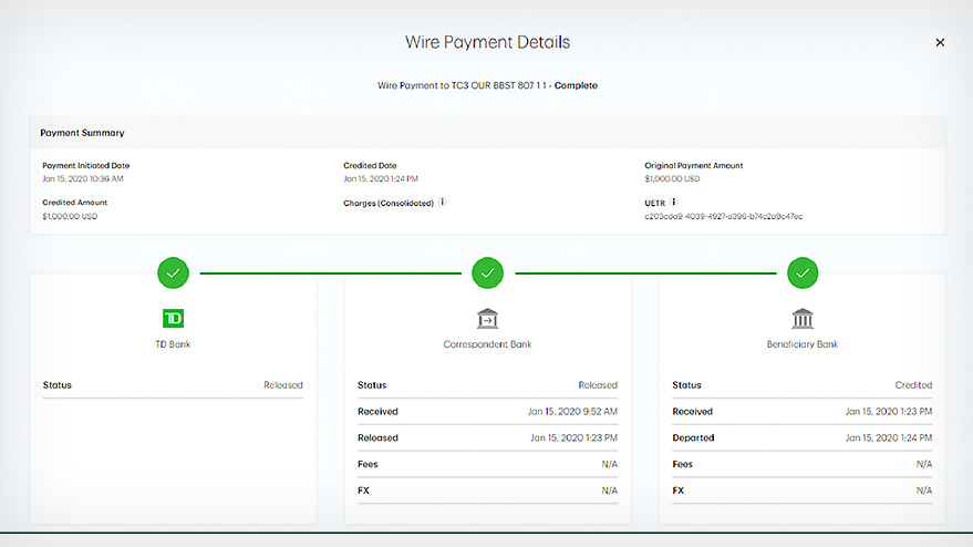 - Suivez votre paiement par virement interbancaire de sa création à la TD à sa destination (date/heure du crédit dans le compte du destinataire).
