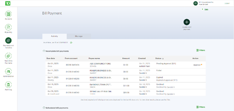 - Sécurité et contrôle accrus grâce à la possibilité de désigner un ou deux approbateurs pour traiter le paiement de factures et les preneurs.