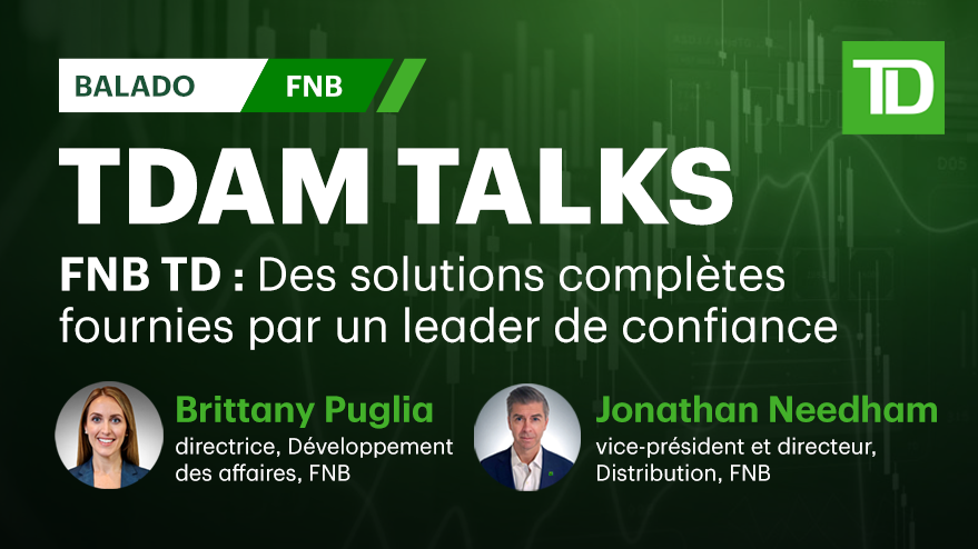 Dans le cadre d’un nouvel épisode du balado GPTD discute FNB, Brittany Puglia, gestionnaire, Développement des affaires, FNB, Gestion de Placements TD Inc. (GPTD), accueille un invité spécial, Jonathan Needham, vice-président et directeur, Distribution, FNB, GPTD, afin de vous aider à mieux comprendre l’offre de fonds négociés en bourse (FNB) soigneusement choisis de GPTD et la façon dont ils peuvent vous aider à atteindre vos objectifs de placement.