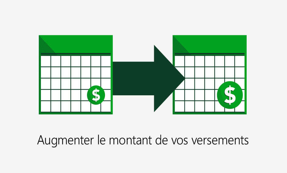 Avec la TD, vous pouvez augmenter le montant initial prévu de vos versements de capital et d’intérêts jusqu’à concurrence de 100 %pendant la durée de votre prêt hypothécaire. Cela représente le double de votre versement ordinaire. Par exemple, si vos paiements s’élèvent habituellement à 1 000 $ par mois, vous pouvez verser jusqu’à 2 000 $ par mois pendant la durée de votre prêt hypothécaire.